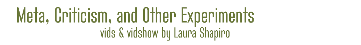 | 1 | Wouldn't it be Nice | Laura Shapiro | Multi | The Beach Boys | 2:40 | 2001. My first meta vid, arguing for better queer representation on TV, was subsequently seen as an argument for gay marriage. It was a big stretch for me at the time. | vid on AO3 |